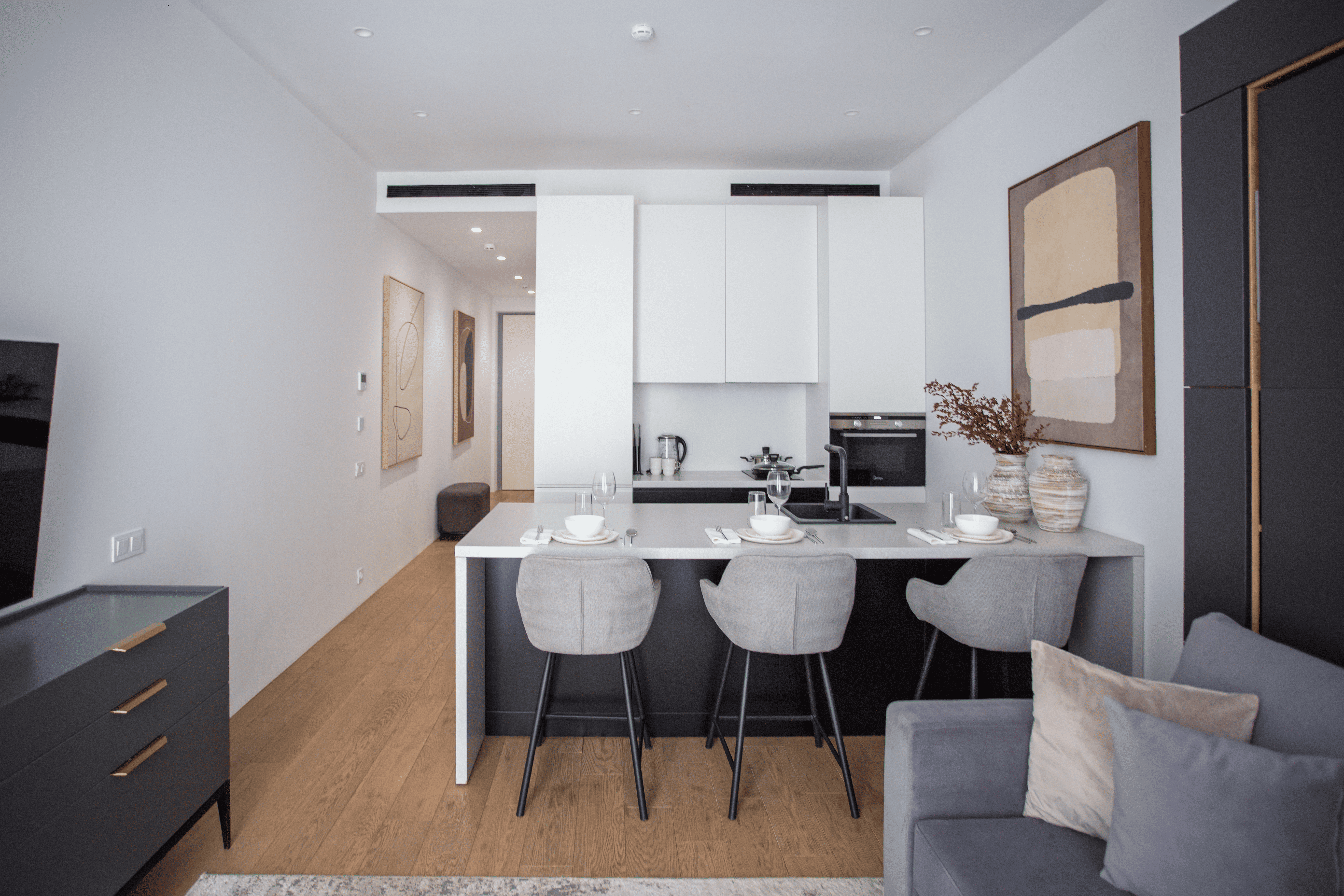 Сдается на длительный срок новая и светлая, комфортабельная и эргономичная дизайнерская студия в трех минутах от м. Китай-город в клубном доме бизнес класса LUMIN HOUSE. Апартаменты с панорамными окнами меблированы, оснащены бытовой техникой и декорированы. Для комфортного первичного заселения имеется все необходимое: кухонные и спальные принадлежности, пылесос, фен, утюг. Спальня-гостиная оснащена двуспальной кроватью-трансформером, стильным журнальным столиком, пуфиком и мультимедиа. Гостиная и спальная зоны разделены островком. В Спальной зоне блэкаут портьеры создают уютную атмосферу. Кухня оснащена варочной панелью, посудомоечной машиной, СВЧ, духовым шкафом, сушкой для посуды, вытяжкой, двухкамерным холодильником, барными стульями. Прихожая с вместительным гардеробом, на стене предусмотрена дизайнерская вешалка. Имеется стирально-сушильная машина. В Санузле просторная душевая кабина, панорамное зеркало над раковиной, полотенцесущитель. В комплексе предусмотрен подземный паркинг, лаундж зона на открытой террасе дома, есть возможность аренды машиномест. В ЖК действует пропускная система(чип-система), приветливый консьерж сервис, хаускипер. Строго соблюдается режим тишины. В лобби имеется зона отдыха, интернет, кофе машина. Только на длительный срок ! Договор заключается с юридическим лицом.
